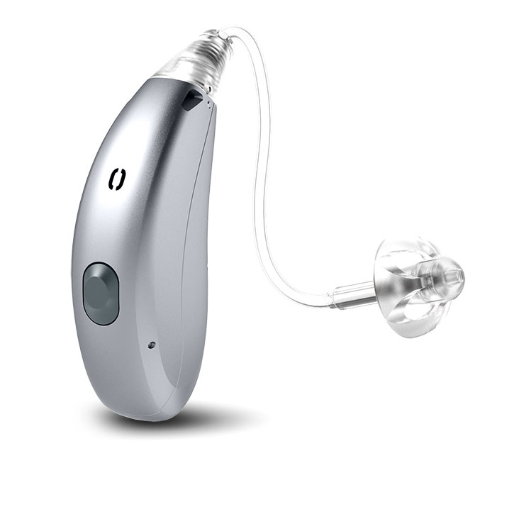 Aparelho auditivo recarregável, pequeno e recheado de recursos.
